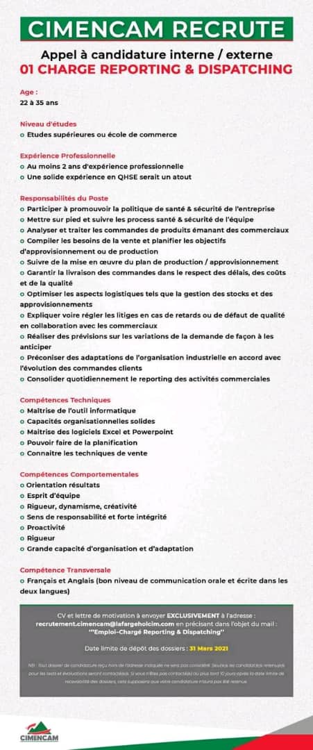 | Avis de recrutement: 04 postes vacants - Cimencam |