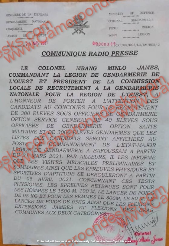 | Communiqué relatif au concours de la gendarmerie 2021 |