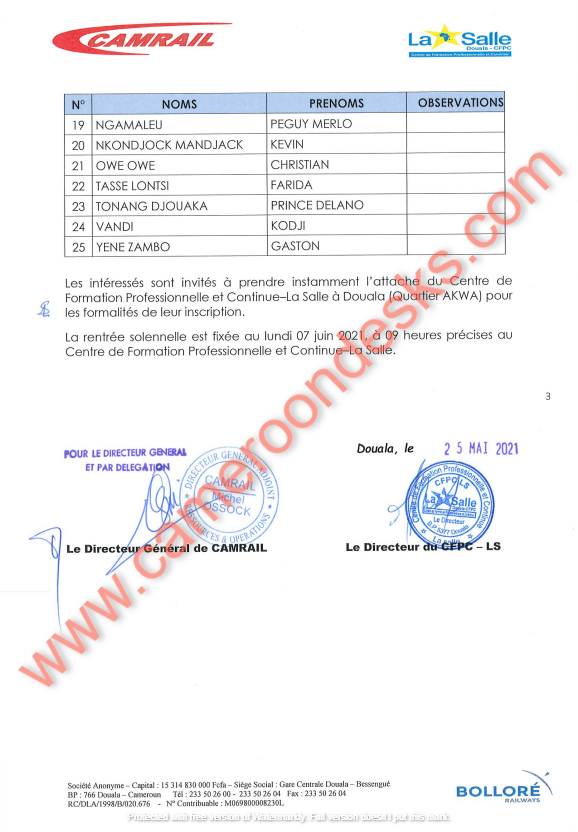 Le Directeur Général de la Société CAMRAIL et le Directeur du