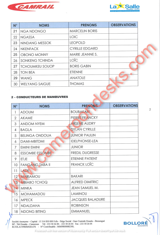 | Résultats définitifs au recrutement des brigadiers de manœuvres et conducteurs de manœuvres - CAMRAIL |