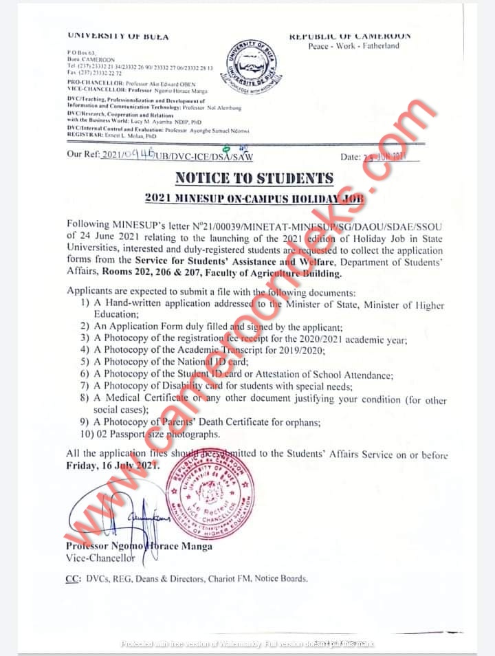 Lauching of the 2021 edition of Holiday job in State Universities,